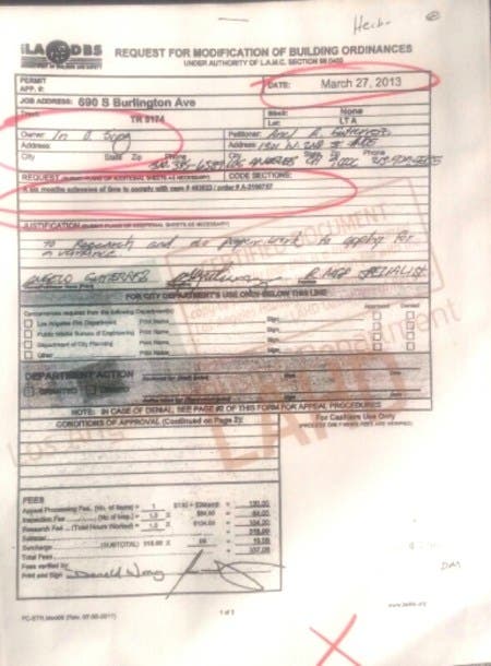 March 23rd, 2013 [p2]The request for modificiaton of building ordinances under authority of LAMC section 98.5483,