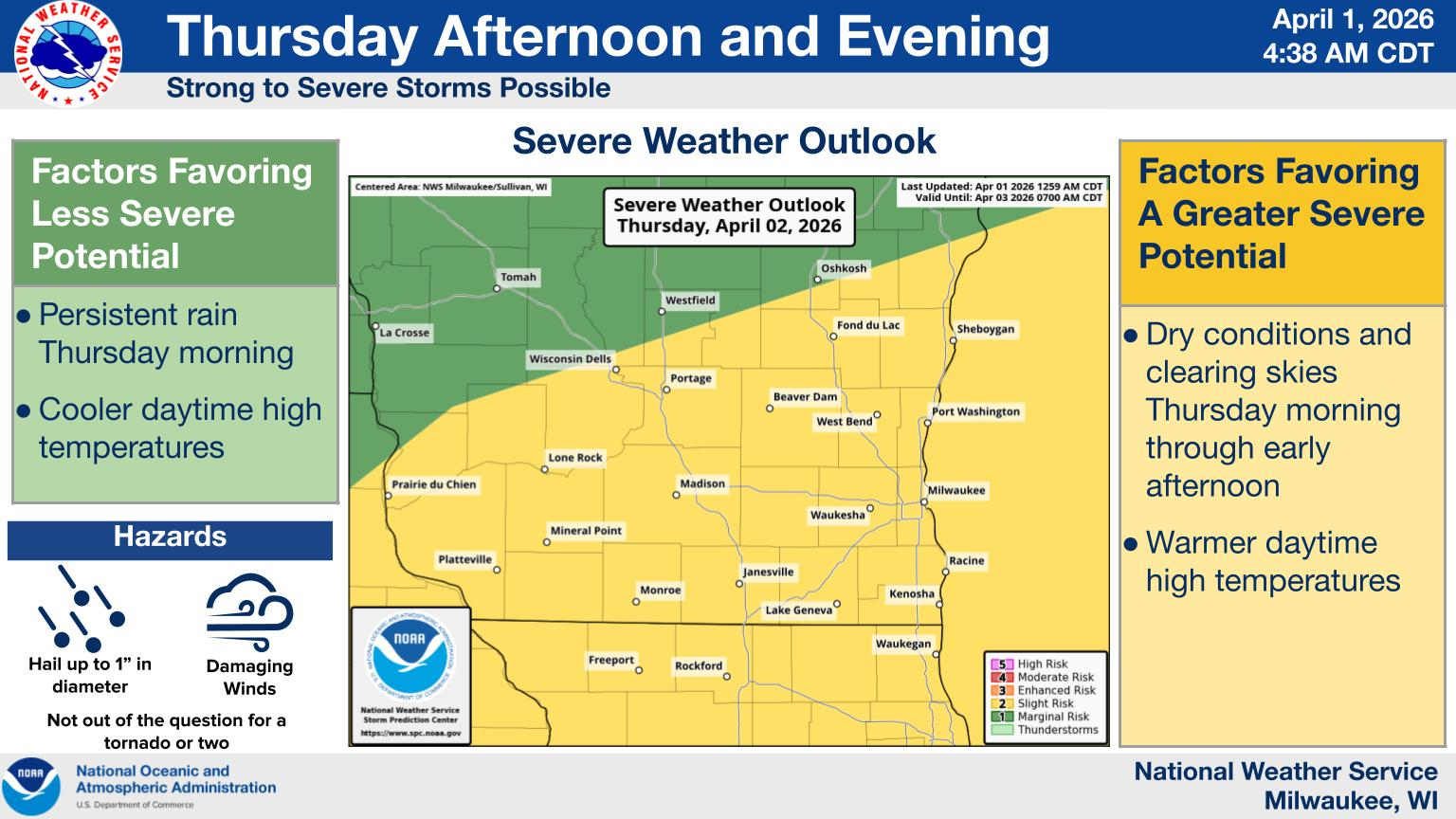 Freezing rain north of I-94 could create icy roads Thursday morning before damaging winds, hail and possible tornadoes later in the day.
