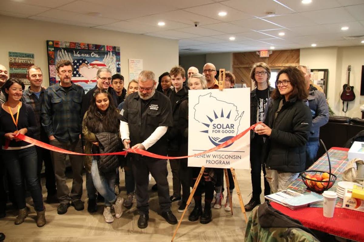 This money went towards solar panels that now sit atop the Veterans’ Community Center building. Not only do the panels provide the community center with electricity, but they also power 15 tiny-homes at the Veterans Village in Racine.
