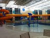 One end of the buildng houses the YMCA and everything people expect: an aquatic center with 2 pools, a water slide and lazy river and a zero-depth splash play area for little ones; fitness studios for classes; a room dedicated to spin classes; a room especially for yoga; a huge gym that can host more than one game at a time or feature one highlight game; a drop-off child care center; and an upstairs with a walk/jog track and a host of cardio equipment, weight machines and free weights.