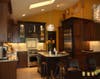 The homeowner was ready to update the kitchen to give it a stylish, contemporary look. Working within the original space, the new kitchen uses Greenfield cherry cabinets with a two-toned finish, new granite tops, unique lighting, and a tile backsplash. Many of the cabinets have upgraded interior accessories to maximize storage.
