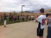 Gathered around the base of the flagpole under overcast skies, the students heard from School Resource Officer Eric Nowicki, who read a poem called "The Day the Sky Stood Still" as well as from Lisa Alberte, an RN who assists brain injured patients at Acres of Hope and Inspiration.