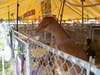 Like all her 12 at the fair, and others at home in Juneau, Yoh is a pet. His pretty feathers would be very attractive to anyone wanting to try the new hairdressing fad or braiding in feathers or fur. Madison said all the poultry folks kept a sharp eye out for anyone trying to pull out a few. And indeed all the cages carry signs warning viewers to keep fingers out.