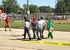 Police did not release information about the suspect, but early police radio reports said a witness described the shooter as a white male, with a heavy build and bald head, wearing a sleeveless T-shirt and carrying two handguns. No one was in custody as of the 4 p.m. press conference.