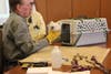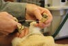 In front of We Energies employees, media, and bird enthusiasts Monday, Septon tagged the birds for tracking and drew blood samples for a DNA bank at the University of Minnesota- Twin Cities. The birds cried out repeatedly during the process, as volunteers held down the their wings for Septon to draw the blood.