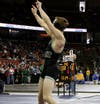 Port Washington senior gets on the medal stand in the 125-pound weight class at the WIAA State Wrestling Championships.