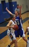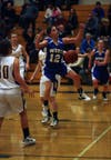Crusader juniors Alison Mueller and Abby Radish combine for 42 points in the decisive home win over the visiting Wolverines.