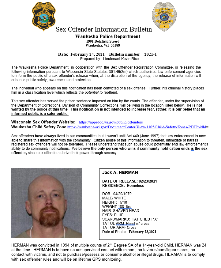 Waukesha Police Department: Sex Offender Information Bulletin