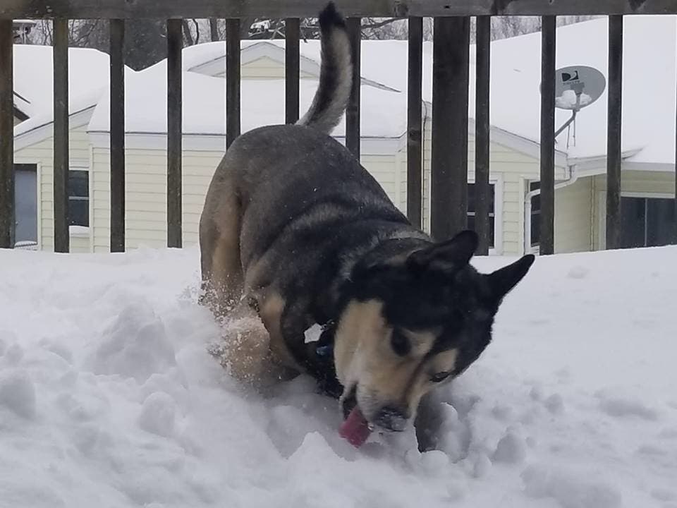 We've had more than 30 entrants and picked Dria Setter's photo of junior reveling in Monday's snow fall.