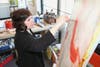 She mixes her medium starting with acrylic and water colors then laying on spray paint and paper. Her art is a reflection of her life, she said. βIt could be a mood, a feeling, a current event. A visual colorful moment will inspire me.β