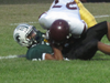 Their level one matchup with undefeated Kimberly on the Papermakers’ home field was one of the toughest matchups in the state – most considered it an epic mismatch. But nobody told the Trojans, and in the first half Tosa West used stiff defensive line and linebacker play to keep the game close. A huge offensive lift came in the second quarter when QB Jared Morzinski found wide-out Develyn Ferguson for a 30 yard scoring pass, and the Trojans cut the Kimberly gap to 14-7. [Sidenote: this was the only TD pass given up by Kimberly in their five-game playoff run].