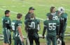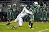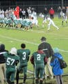 Adding to Greendale’s success was an offensive playbook that took advantage of the slippery field – especially passing routes that had Trojan defenders isolated, slipping and spinning. Greendale had four first-half touchdown passes, leading to a lopsided halftime score of 35-7.Â
