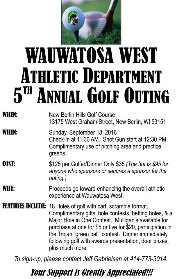 Be sure to sign up for the Wauwatosa West Fifth Annual Golf Outing, which takes place next Sunday, Sept. 18 New Berlin Hills .