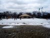 The Department of Public Works removes any snow from the park so organizers have an area to create the rink. They'll also set out mats for skaters to walk on to keep their skate blades sharp. DPW will return and remove any additional snow after the rink is made, but the community tends to keep an eye on it as well.